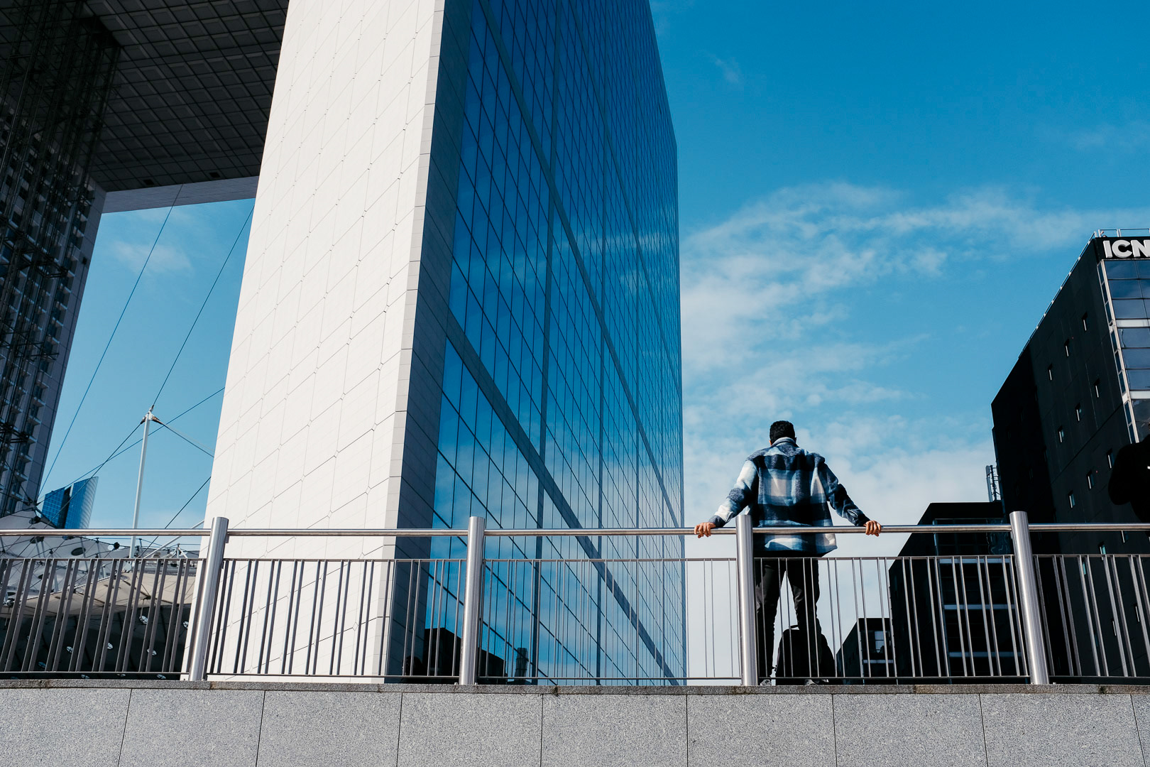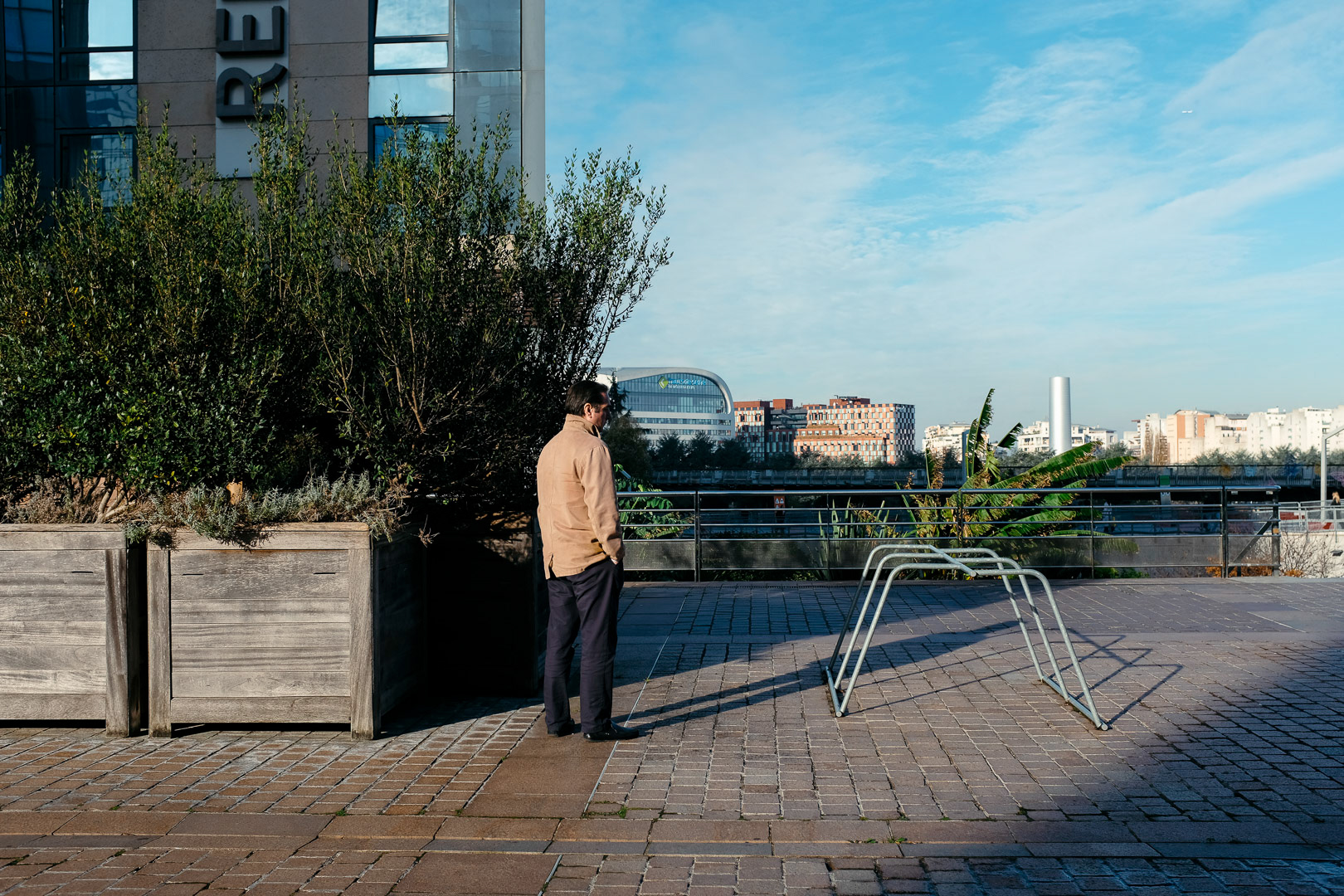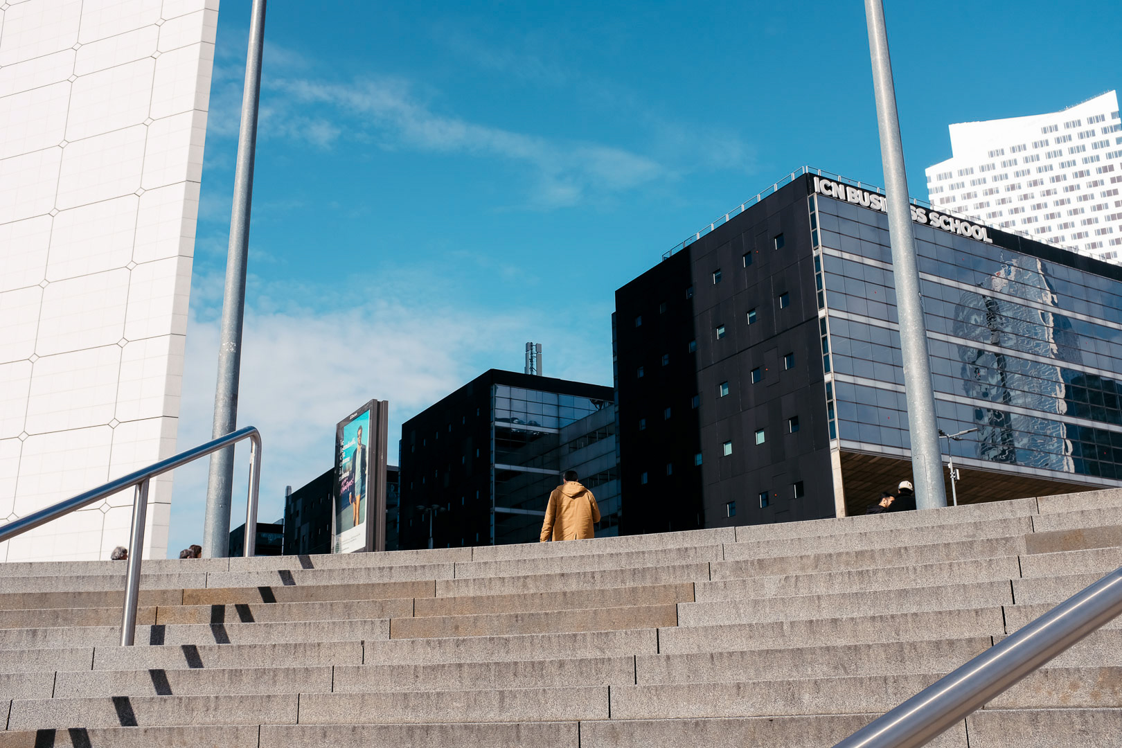 I am not a journalist, and my street photos are not a documentary exploration of the La Défense worker. What I seek with my photos is to convey my feeling of the place, creating a unique atmosphere that slightly suspends time and shows individuals apart from the crowd. But these individuals are anonymous; we know nothing about them except for a kind of solitude that emanates from their place in the composition.